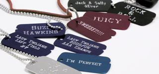 • Engrave on custom handmade Signature Series Pet ID Tags.